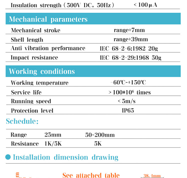 Brief introduction:Linear displacement sensor is a kind of high precision displacement sensor which takes resistance as detection quantity and can be adjusted linearly. The sensor is mainly composed of a resistance plate and a movable brush, which is connected to the measuring circuit with a voltage divider. When the brush slides on the resistance plate, the output end obtains the voltage signal proportional to the displacement. The linear accuracy of linear displacement sensor is not affected by the total resistance of the resistance plate, but mainly by the unit resistance, that is, the linearity of the resistance value of the se...... [MORE]