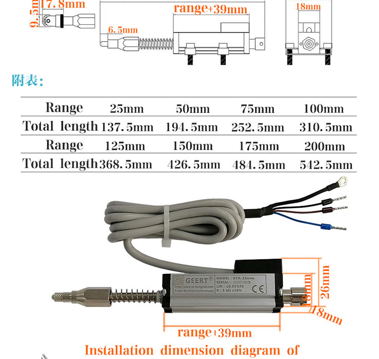 ·  Displacement sensor can be used in